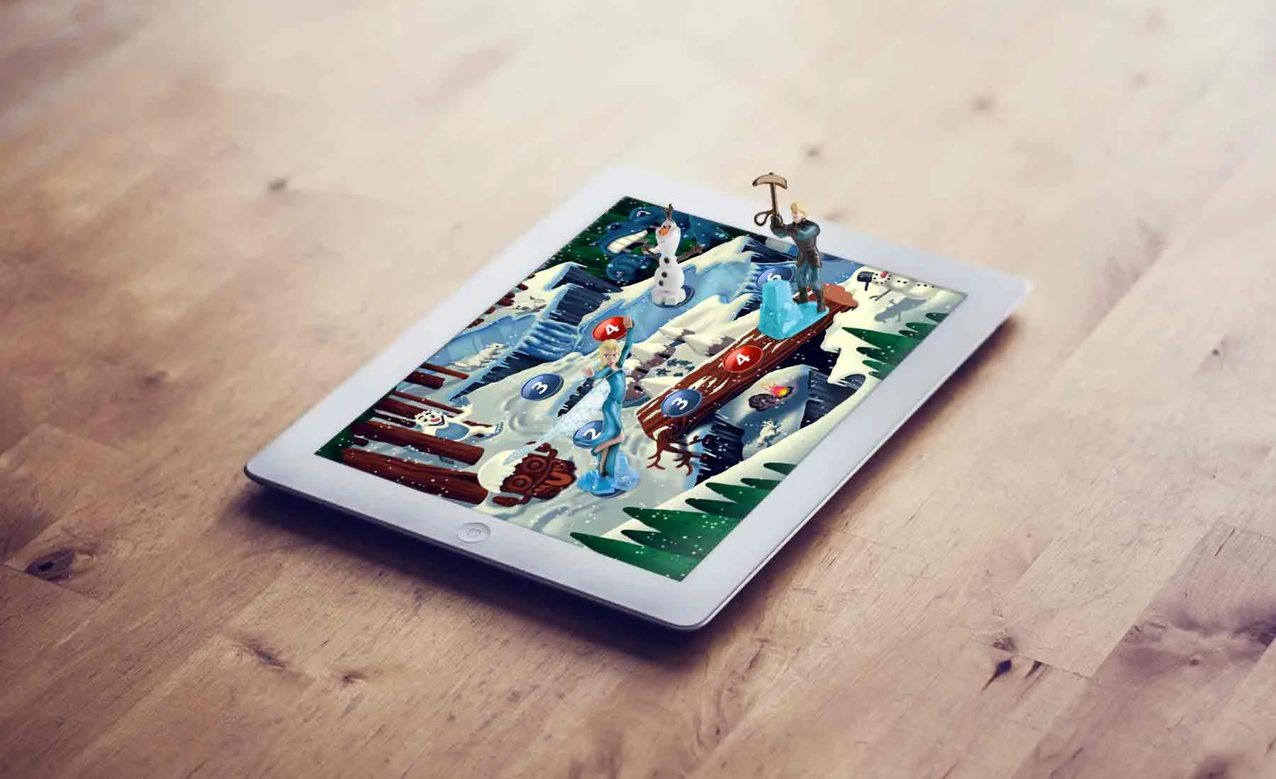 We created an interactive storytelling app that uses the miniature toys as game pieces. Kids just place the toys on the tablet’s screen, as you would do on a board game.
